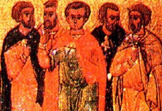 كتب المؤرخ إفسافيوس القيصري (٢٦٥-٣٣٩): في السنة الثانية للاضطهاد الكبير الذي أطلقه الامبراطور الروماني ديوكلتيانوس (سنة ٣٠٥)، كان حاكم فلسطين أوربانوس يجتهد بقساوة كبيرة في تطبيق قرار الاضطهاد. قرر إقامة احتفال كبير في قيصرية يحضره جميع الشعب ويُدفع خلاله الى الوحوش المفترسة كل المسيحيين الذين رفضوا تقديم الذبائح للآلهة الوثنية. في الوقت المحدد، تقدّم إلى المدرج ستة شبان موثوقي الأيدي، وقد امتلأوا محبة للمسيح، وصاروا يركضون ويصرخون للجموع انهم مسيحيون. واحد منهم من بلاد البنط (شمالي آسيا الصغرى) اسمه تيمولاوس، والثاني من طرابلس في فينيقية واسمه ديونيسيوس، وكان الثالث إيبوذياكونًا من كنيسة ديوسبوليس (اللد) اسمه رومولوس، واثنان آخران من مصر اسكندر وباييسيوس، والاخير اسمه ايضا اسكندر وهو من غزة. فوجئ الحاكم بدخولهم، وامر بإلقاء القبض عليهم وزجّهم في السجن. بعد بضعة أيام، سُجن معهم أغابيوس الذي كان قد كابد عذابات شديدة، وديونيسيوس ثانٍ أُلقي القبض عليه وهو يساعد المسجونين. وإذ بقي الجميع صامدين في تأكيد إيمانهم المسيحي، قُطعت رؤوسهم ونالوا إكليل الشهادة في السماء.